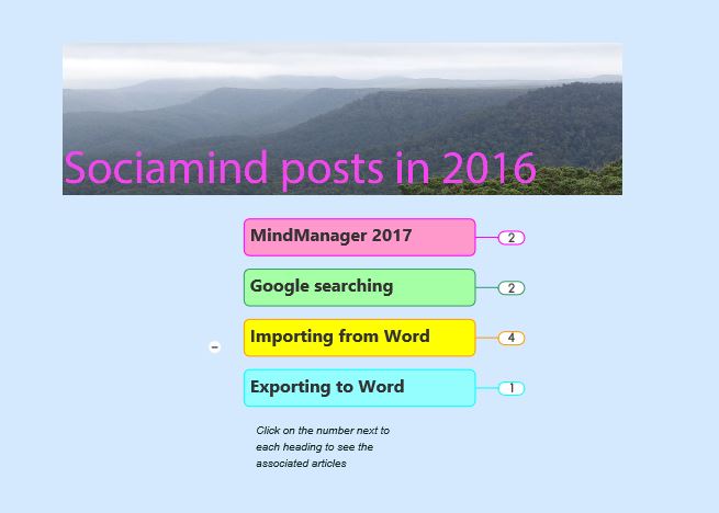In this post I’ll describe how the export facility works. I will also demonstrate a map I created for a simple purpose – the creation of a table of posts I write in 2016 for one of my blogs. Other examples where such a map could be used include as a menu for website navigation or a table of contents for an online publication.