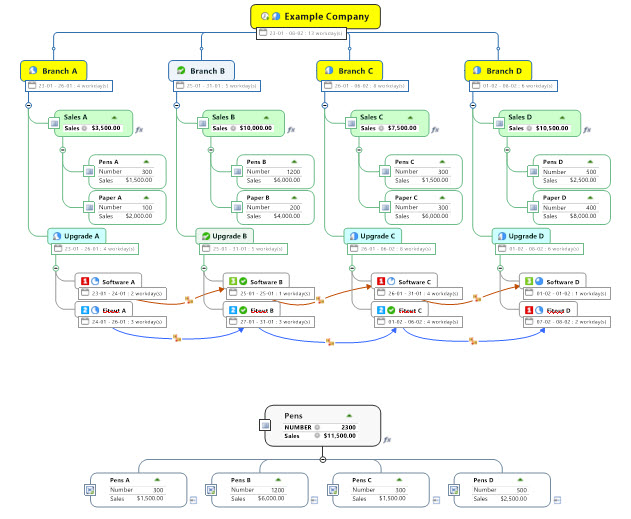 I’m just starting to explore how you can combine these and the other new features of MM2018. For example, Conditional Formatting can be applied to either a separate dashboard map, or if you establish an in-map dashboard for a large map you can then set up conditional formatting rules selectively within the same map. You could turn off these rules for all topics in the main map but retain them for the dashboard, thus showing the original topic appearance in the main map while the dashboard conveys critical information such as overdue tasks.