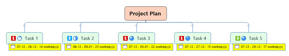 Update: since posting the first version of this article I discovered that the MAP add-in Extended Properties feature which this approach relies on counts task days differently to MindManager. I’ve developed a workaround which is incorporated into this updated version.