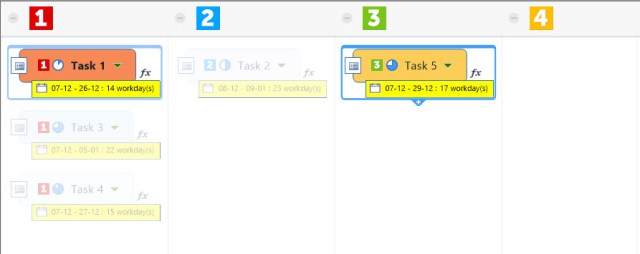 In this example I’ve set up five rules to provide a visual scale of whether tasks are on track and if not how far in advance or behind they are: