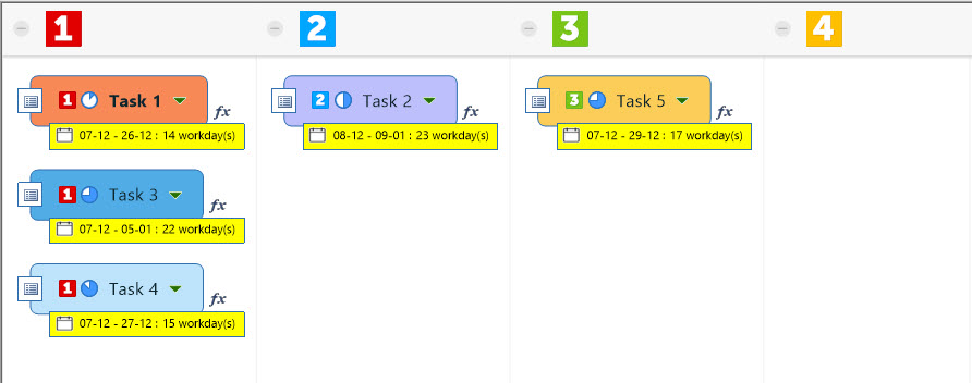 The first step is getting relevant task information into the task’s topic properties so that a number of formulae can be used compare and analyse the data. This is the crucial role of the MAP add-in.