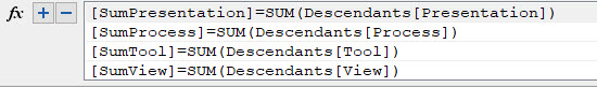 Finally, a set of formulas has to be created to total the topic properties, in this case at the sub-project as well as the main project level.