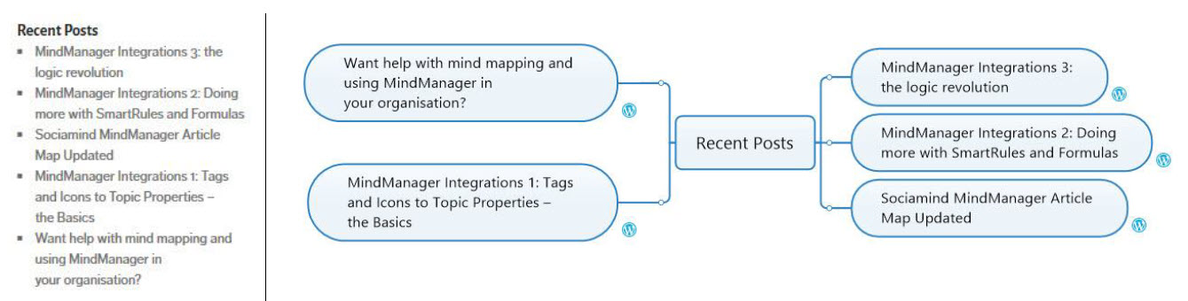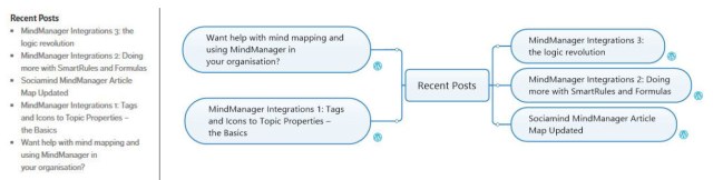I’ll demonstrate the process with a very simple example – the list of recent posts on the right-hand side of this blog page, as shown left below – and describe how to turn it into the map on the right.